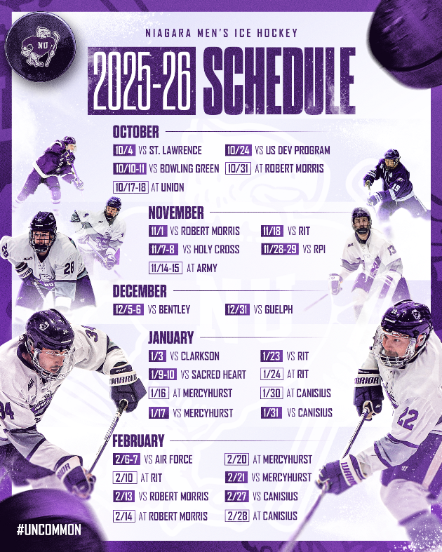 Team UT again worked with Niagara Athletics to produce a set of easily updateable templates to use across all sports on social media for the 25-26 season. In addition, a set of custom templates was produced for Hockey and MBB for the upcoming season.